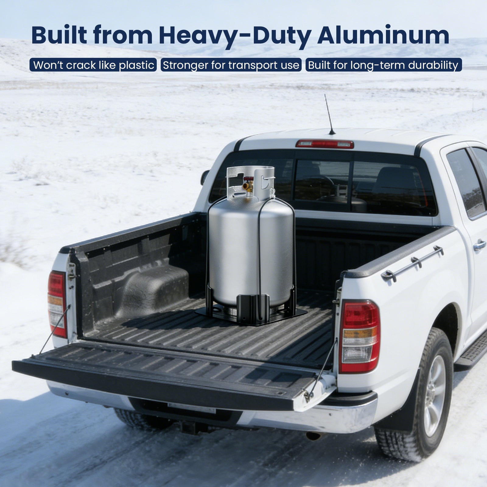● Durable Upgrade Over Plastic Tank Bases – Many RV owners struggle with cracked plastic bases. The aluminum propane tank stabilizer offers stronger long-term durability for truck beds, RV storage compartments, and trailers.