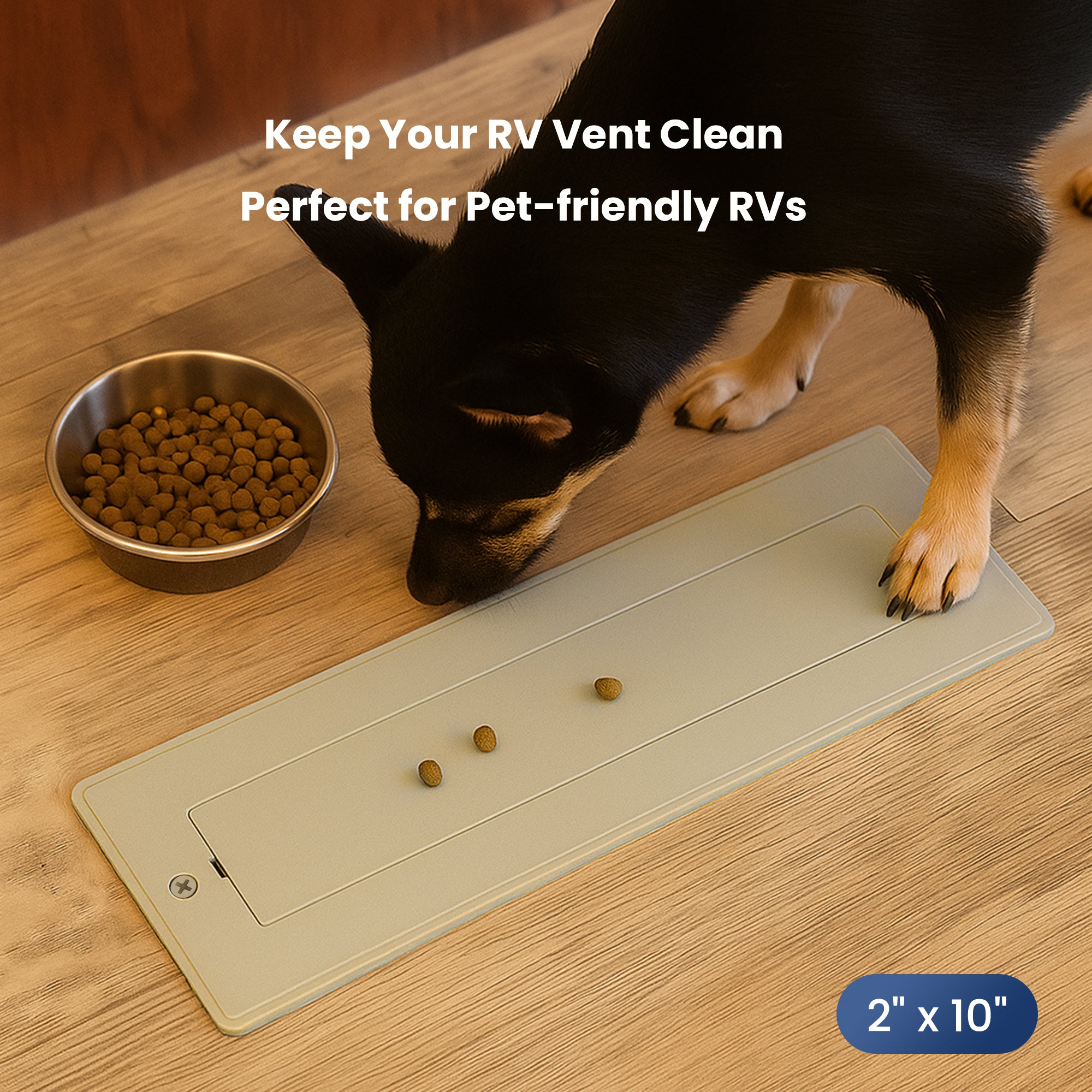 Includes a removable cover with six embedded iron inserts that align with six magnets on the register base. Snap it on to block pet hair, dust, and falling items — keeping your RV interior clean and safe for curious paws.