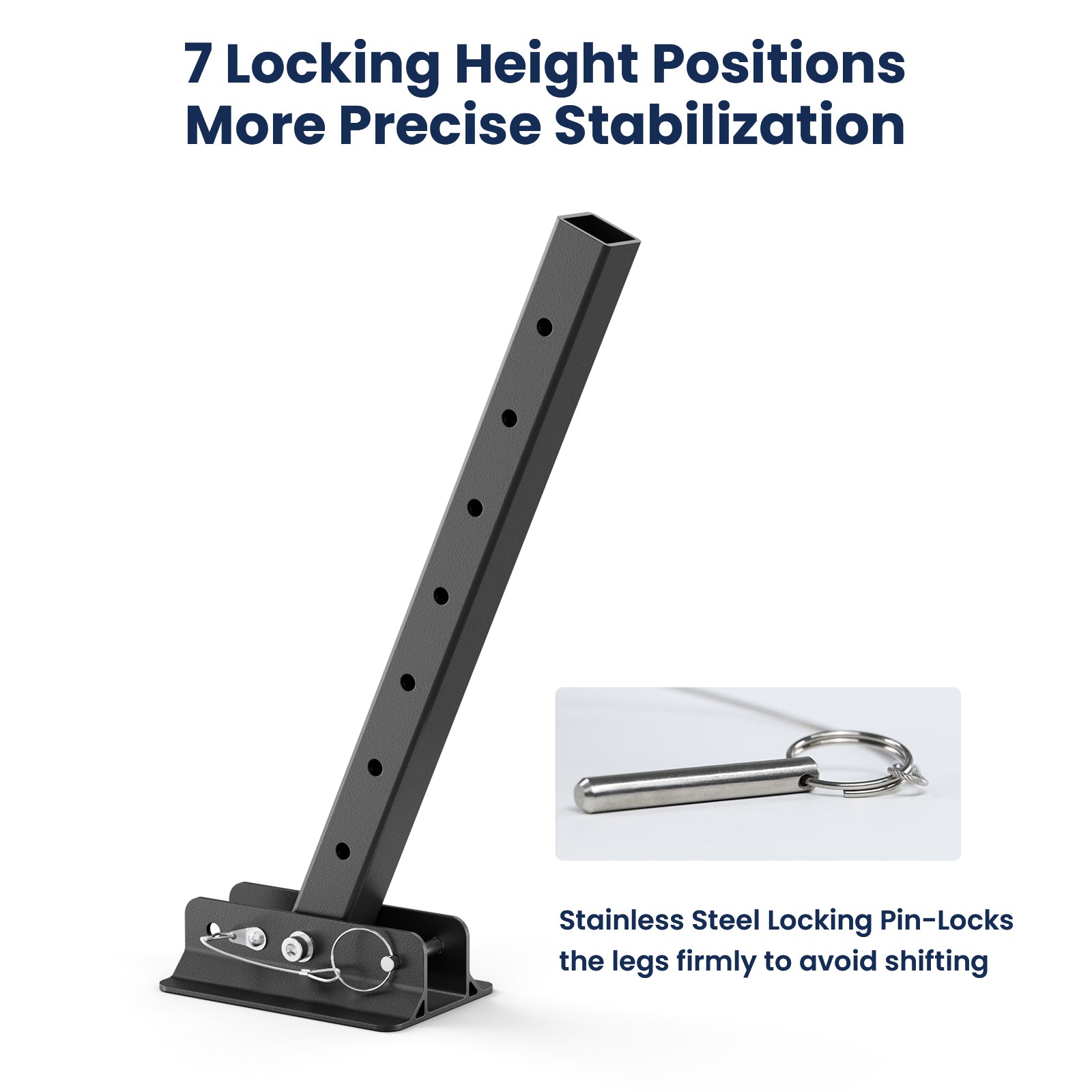● Secure Locking Pins – Stainless steel pins keep stabilizer legs firmly in place, safer and easier than traditional press-to-lock designs.