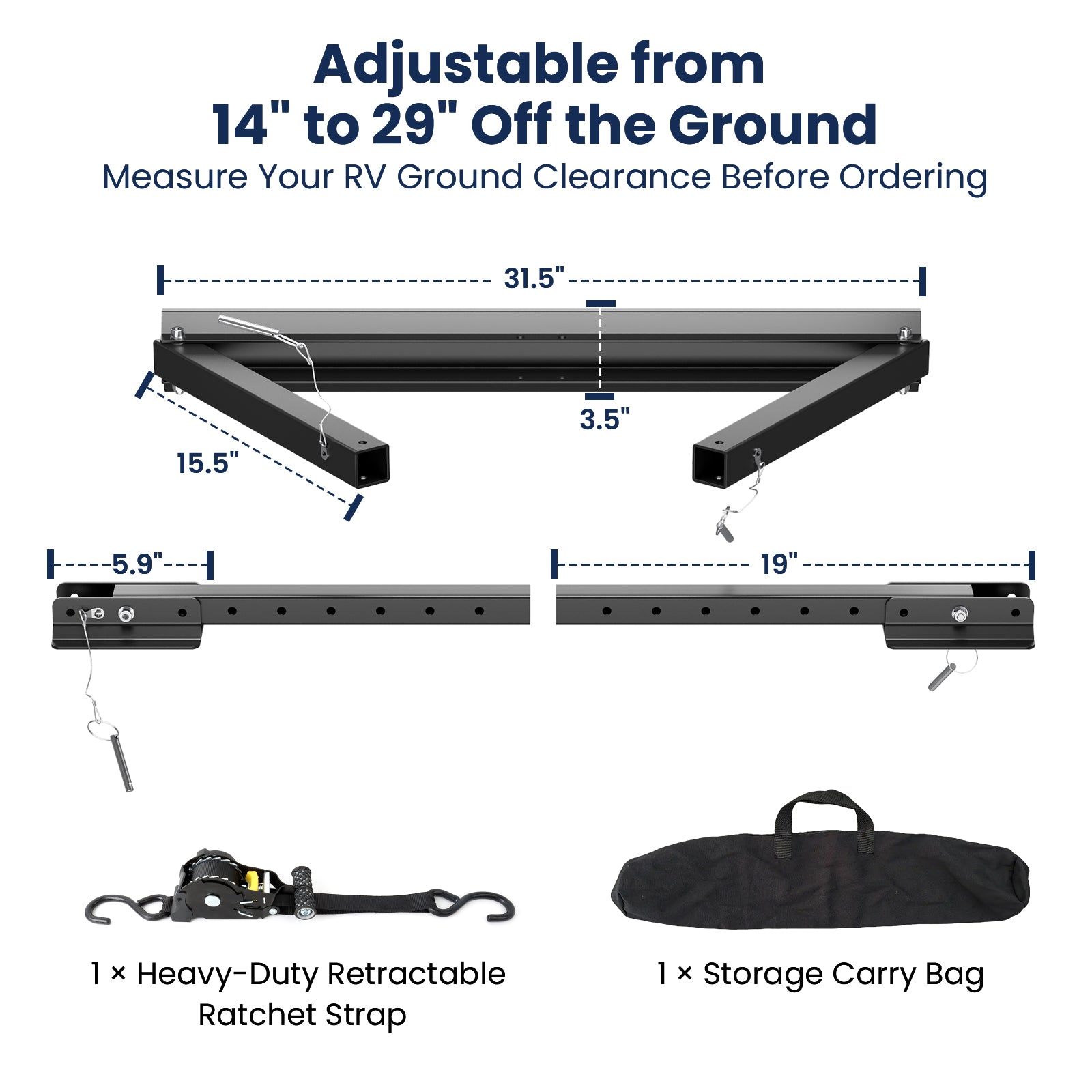 ● Adjustable 14"-29" Height – Seven locking positions allow precise customization for different terrains and trailer heights.